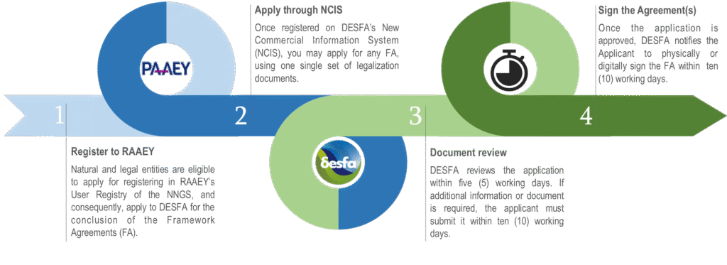 Once included in RAAEY’s User Registry, the next step is to register in DESFA’s Commercial Information System (NCIS) where all documents and data required for signing a Framework Agreement can be submitted electronically.